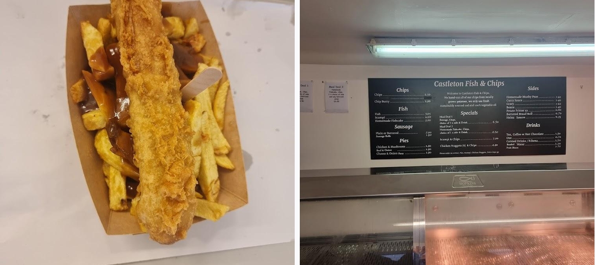 Indulge in the best fish and chips in Castleton at Castleton Fish & Chips! Enjoy freshly cooked, delicious meals including crispy battered fish, hearty chips, and delightful curries, all in a casual atmosphere with outdoor seating and delivery options. Perfect for solo diners, families, and hikers alike. Visit us today for a satisfying quick bite in the heart of Hope Valley.