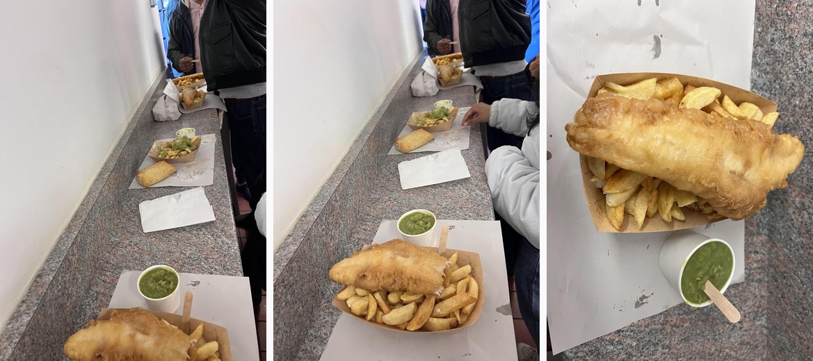 We were actually staying in the cottage above the chip shop for a couple of nights and the smell was delightful so we had to try them. The size of the fish was fantastic and it tasted delicious .. and not too much batter. The chips were lovely too and the portion size was enough for 2 to share. The cost was great value, the staff were very friendly and we definitely will visit again when we’re up this way